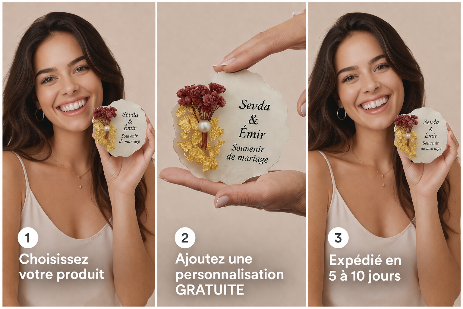 Prénom, photo, texte, couleur — tout est sur-mesure