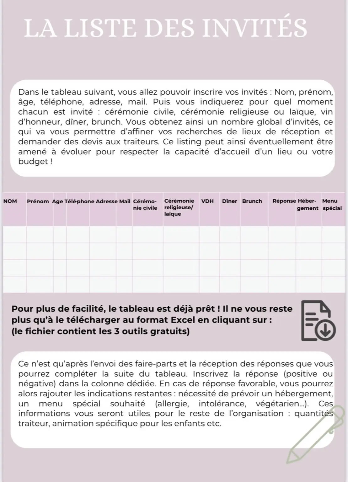 - 3 outils gratuits à télécharger : budget mariage, rétroplanning, liste des invités