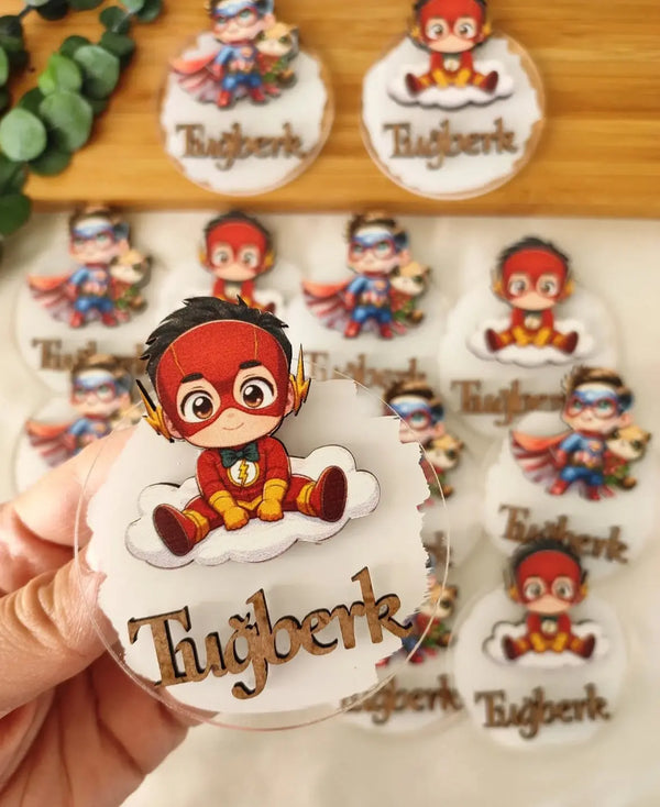 Personnalisés avec un prénom, une date et une illustration au choix (super-héros, dessins animés, thèmes de mariage, baptême, etc.), nos magnets s’adaptent à toutes vos fêtes.